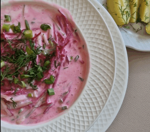 Šaltibarščiai su burokėliais ir kefyru: